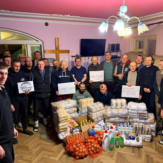Viktor, Militärkaplan der 110. Brigade holt Lebensmittel, Schokolade für Kinder, Hundefutter, Kanister u.v.m und bringt die Sachen für uns in die Ostukraine.