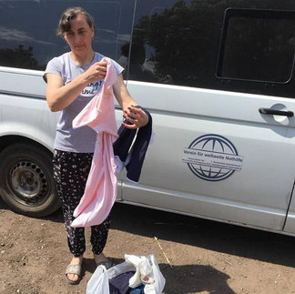 "Hallo Georg. Wir setzen unsere Reisen entlang der Frontlinie fort, wir besuchten die Dörfer in der Nähe von Ugledar, verteilten Sommerkleidung, Schuhe und Lebensmittel. Die Menschen müssen 80 km zum nächsten Geschäft gehen, öffentliche Verkehrsmittel verkehren nicht, weil die Straße manchmal durchschossen ist. Wir bringen ständig Kleidung und Lebensmittel mit und das macht das Leben für diese Menschen einfacher. Die Menschen sind sehr dankbar für die Hilfe."