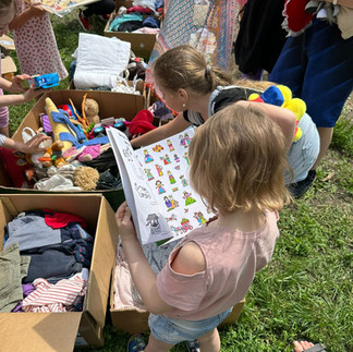 Verteilung von Sachspenden am "Tag des Kindes" in Perschotrawensk, wo die Zahl an Binnenflüchtlingen aus dem Donbass stetig steigt.